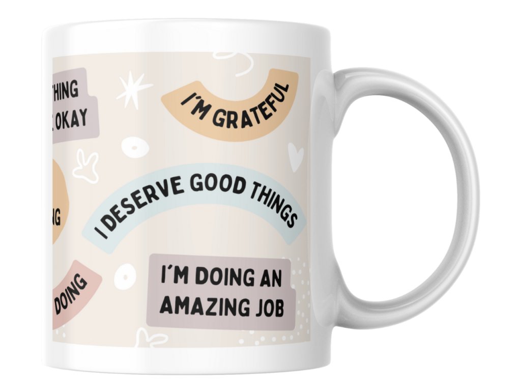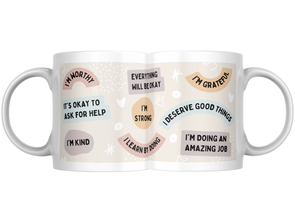Hrnček, ktorý nabíja pozitívnou energiou každé ráno! Začnite svoj deň s dávkou pozitivity! Náš keramický hrnček Afirmácie s krásnymi anglickými motivačnými afirmáciami je viac než len nádoba na kávu – je to denný rituál sebalásky, motivácie a pozitívneho myslenia.