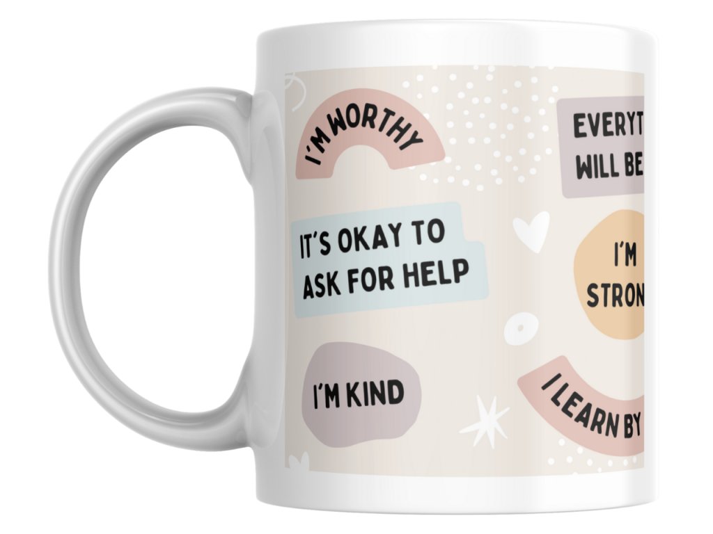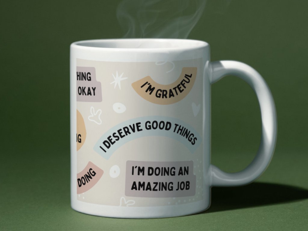 Tento hrnček je ako osobný motivačný kouč v šálke! Pretože slová majú moc – a keď si každé ráno pripomeniete pozitívne afirmácie, váš deň sa zmení. Pozitívne myslenie začína prvou šálkou kávy!