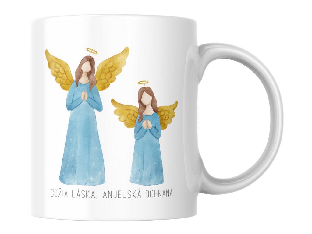 Objednaj si hrnček "Božia láska, anjelská ochrana" a cíť sa milovaný a chránený pri každej káve! Každý dúšok ťa pripomenie, že si obklopený Božou láskou a pod ochranou anjelov! Tento produkt je vytvorený s hlbokou úctou k duchovným hodnotám a viere. Každý hrnček prináša kúsok nebeského pokoja, lásky a