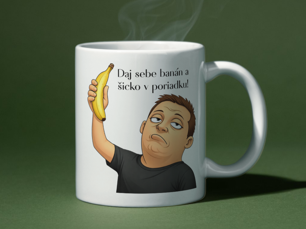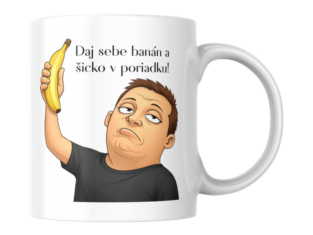 Keramický hrnček Banán s objemom 330 ml nesie karikatúru Jozefa, ako drží v ruke banán s výrazom človeka, ktorý objavil riešenie všetkých životných problémov. Jeho legendárna hláška je vytlačená presne tak, ako ju Slovensko pozná a miluje. Tento hrnček je kultová spomienka na moment, ktorý pobavil celé Slovensko.