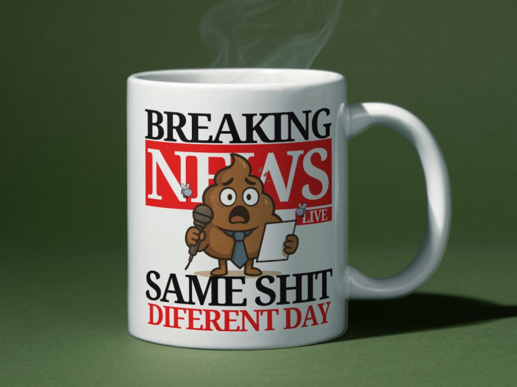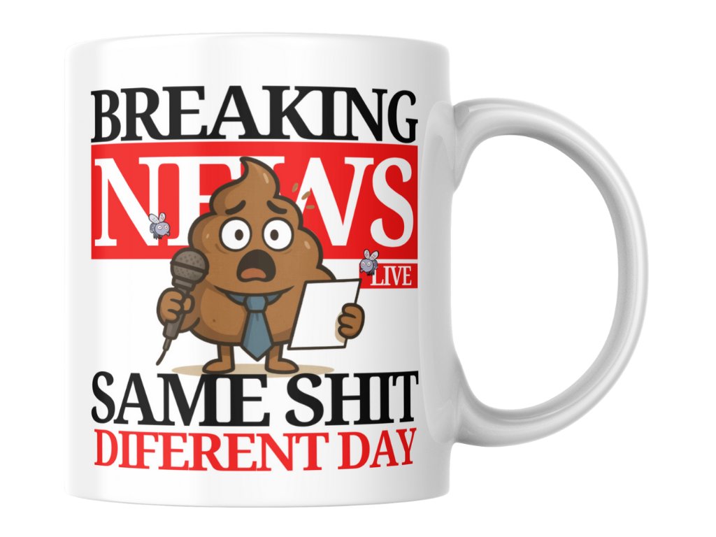 A teraz Breaking News: stále to isté. Zapnete televíziu a čo vidíte? Rovnaké správy ako včera. Rovnaké témy ako minulý týždeň. Rovnaké politické hádky ako minulý mesiac. Breaking news oznámia niečo, čo ste už počuli päťkrát za posledný týždeň. Máte z toho dosť? Vtedy potrebujete presne tento hrnček.