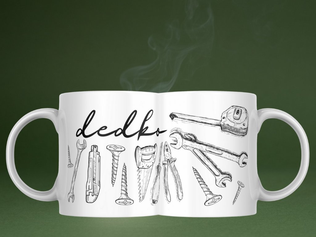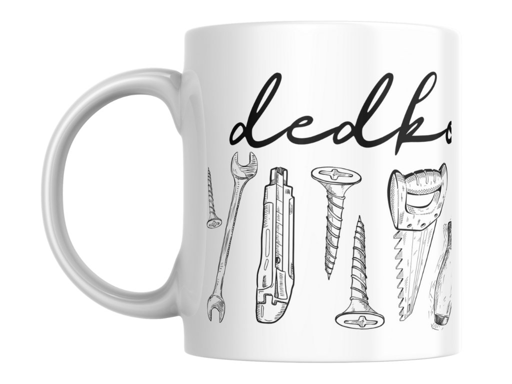 "Dedko" – pre majstra so zlatými rukami! Tento výnimočný hrnček oslavuje každého dedka, ktorý vie všetko opraviť a vytvoriť! Keramický hrnček s objemom 330ml sa vyznačuje praktickým dizajnom náradia – kladivo, skrutkovač, kľúč, píla a ďalšie nástroje, ktoré sú neodmysliteľnou súčasťou dedkovej dielne. Nápis "Dedko" jasne hovorí, komu tento hrnček patrí – majstrovi domácnosti!