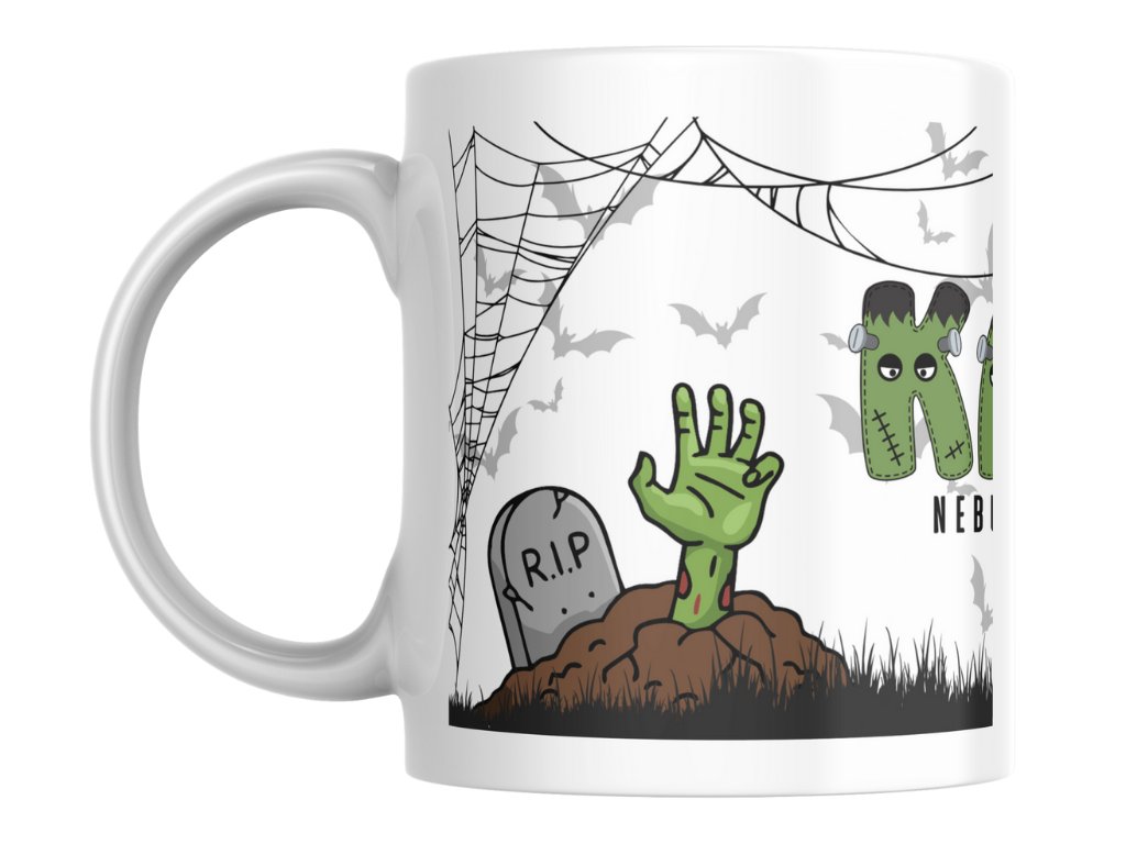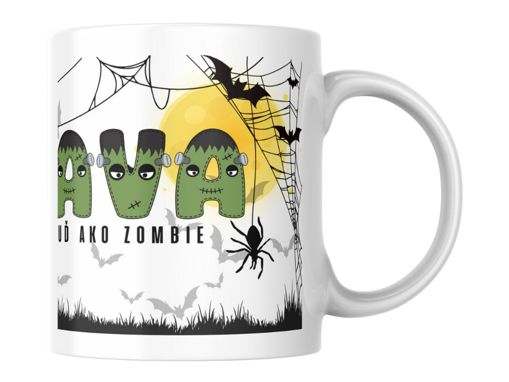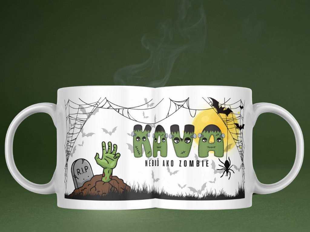 Nebuď ako zombie – buď Frankenstein! Je medzi nimi rozdiel? Áno! Zombie bezcieľne blúdia a len stonajú. Frankenstein bol inteligentný, mal cieľ. Každé ráno je boj. Budík zvoní, vy sa cítite akoby ste z hrobu vyliezli, oči sa nechcú otvoriť. Presne v tejto chvíli potrebujete tento halloweensky hrnček. Strašidelný dizajn s hlbokým významom. Hrob = tvoja posteľ ráno. Ruka zo zeme = ty, keď sa snažíš vstať. Pavučiny = tvoje rozcuchané vlasy. Netopiere = tvoje myšlienky pred kávou. Káva v hrnčeku = tvoja záchrana!
