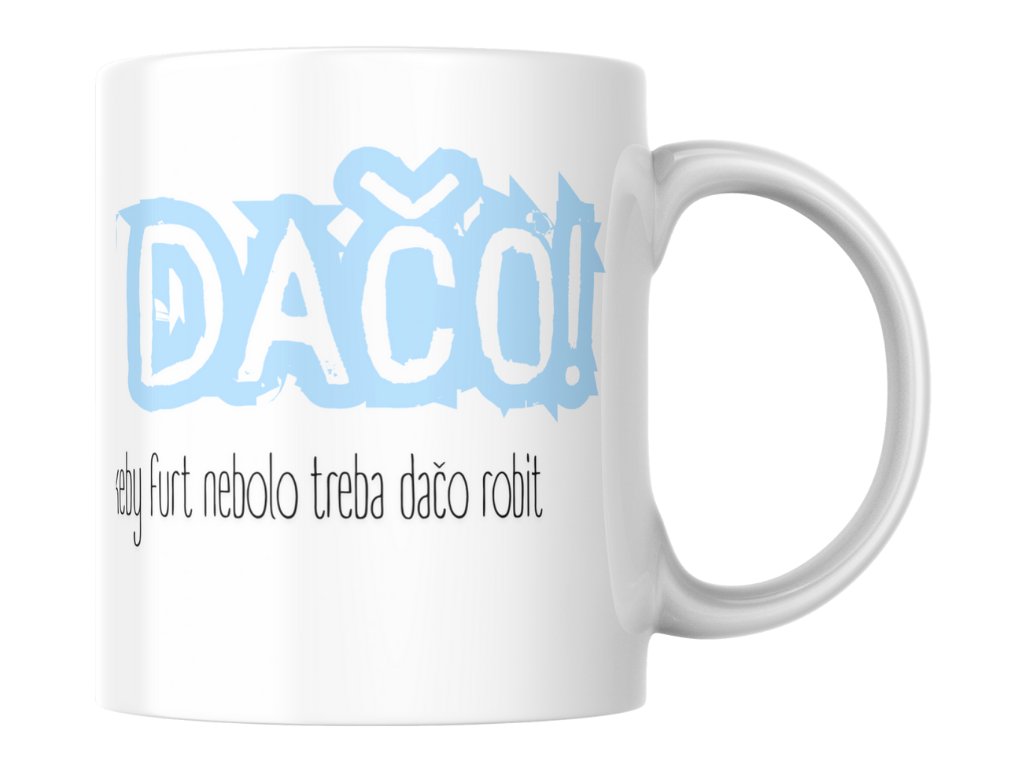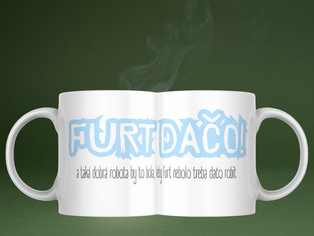 "FURT DAČO! A taká dobrá robota by to bola, keby furt nebolo treba dačo robiť." Toto je hrnček, ktorý hovorí za každého z nás! Keramický hrnček s objemom 330ml s textom, ktorý perfektne vystihuje realitu pracovného života. Práca by bola úžasná... keby sme nemuseli furt dačo robiť! Je to manifest unavených pracovníkov a zároveň vtipná pripomienka toho, prečo potrebujeme tú rannú kávu!