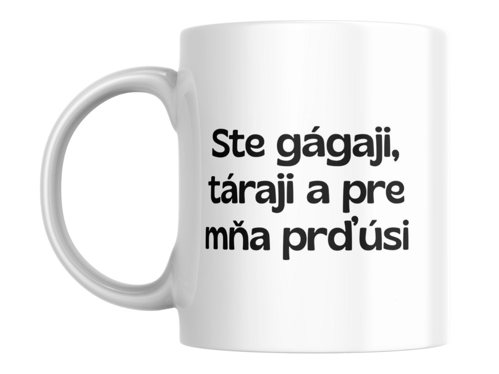 Objednaj si kultový hrnček "Gágaji, táraji" a pi svoju kávu s úsmevom! Každé ráno bude o niečo veselšie! Tento produkt je satirický a slúži výlučne na zábavné účely. Žiadni gágaji, táraji ani prďúsi neboli pri výrobe hrnčeka poškodení.