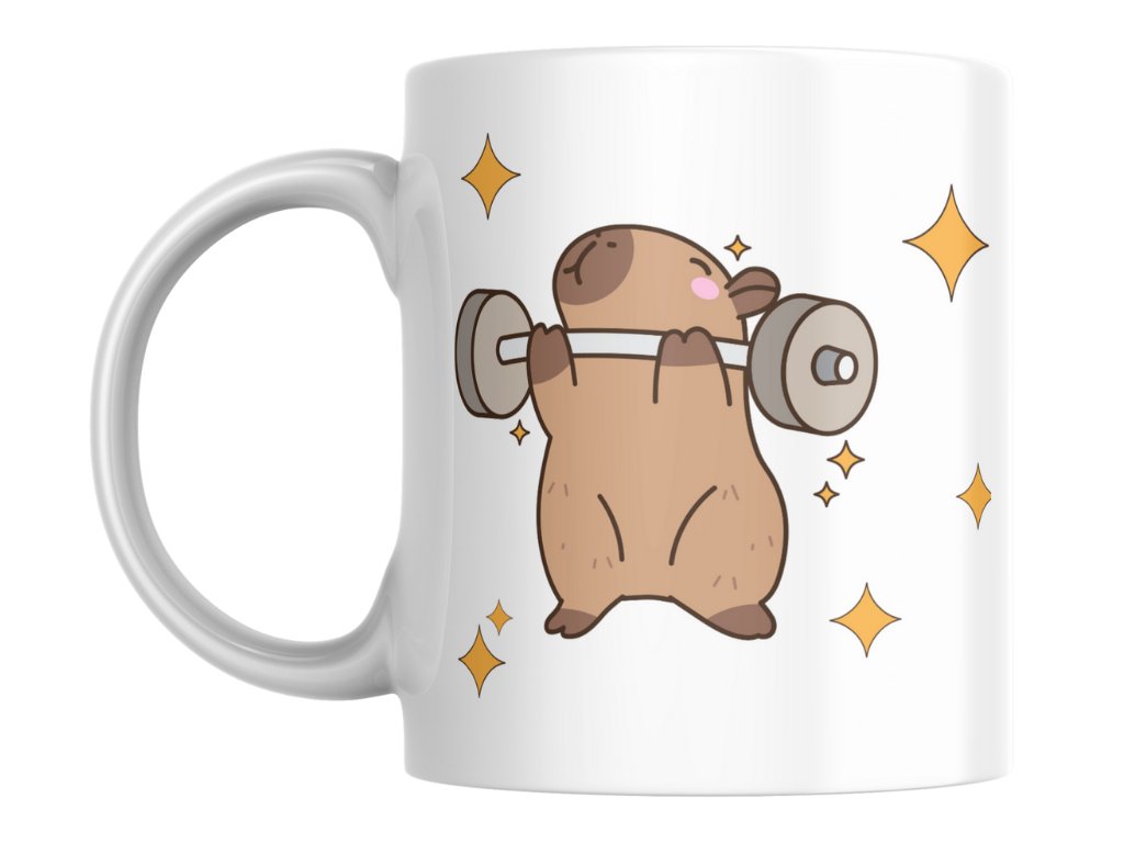 Kto potrebuje protein, keď máte kávu? Keramický hrnček Kapybara s kávou s objemom 330ml je vtipnou kombináciou fitness motivácie a kávovej závislosti. Kapybara cvičí a vie, čo je pravý predtréningový doplnok!