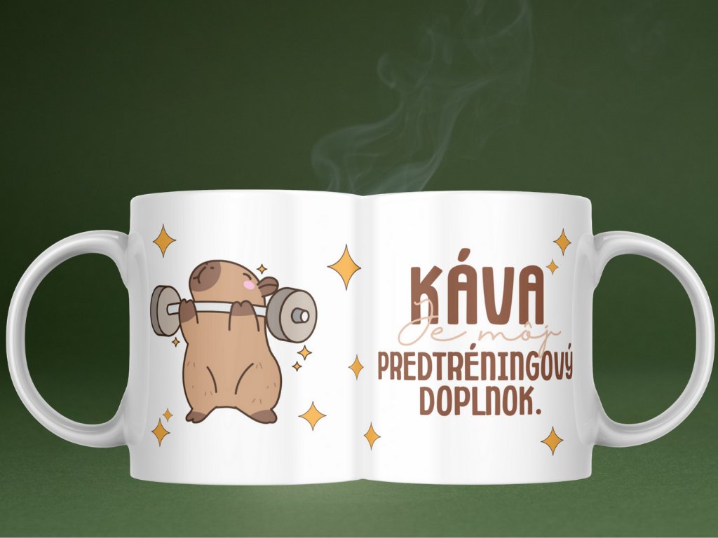 Kapybara to pochopila. Aj vy? Káva je ten najlepší predtréningový doplnok – dáva energiu, motiváciu a chuť ísť to rozbiť! A keď ju pijete z tohto hrnčeka s kapybarou, máte aj dobrú náladu zadarmo. 🦫💪