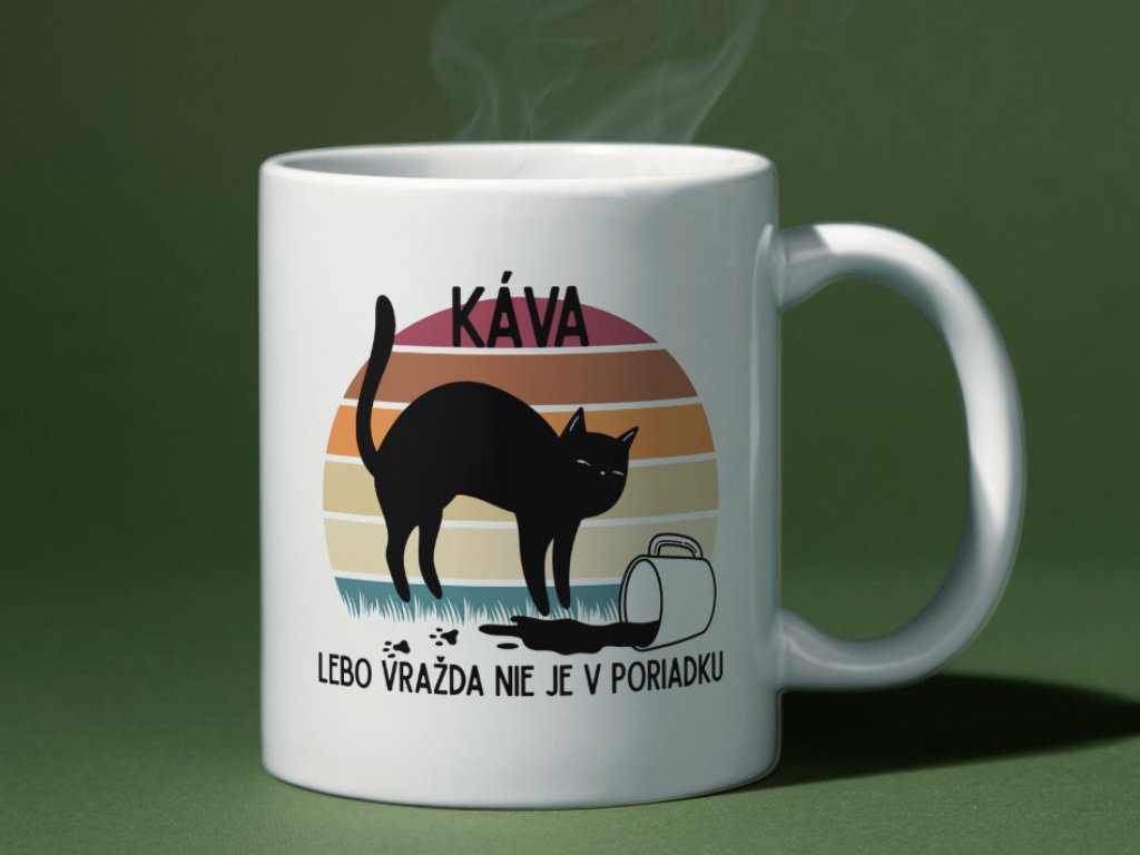 🐱 Vtipné varovanie: "Káva, lebo vražda nie je v poriadku" – jasný odkaz!