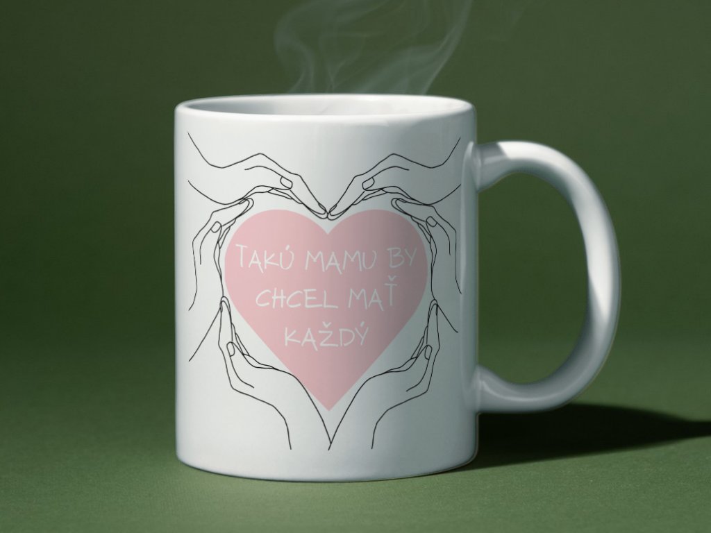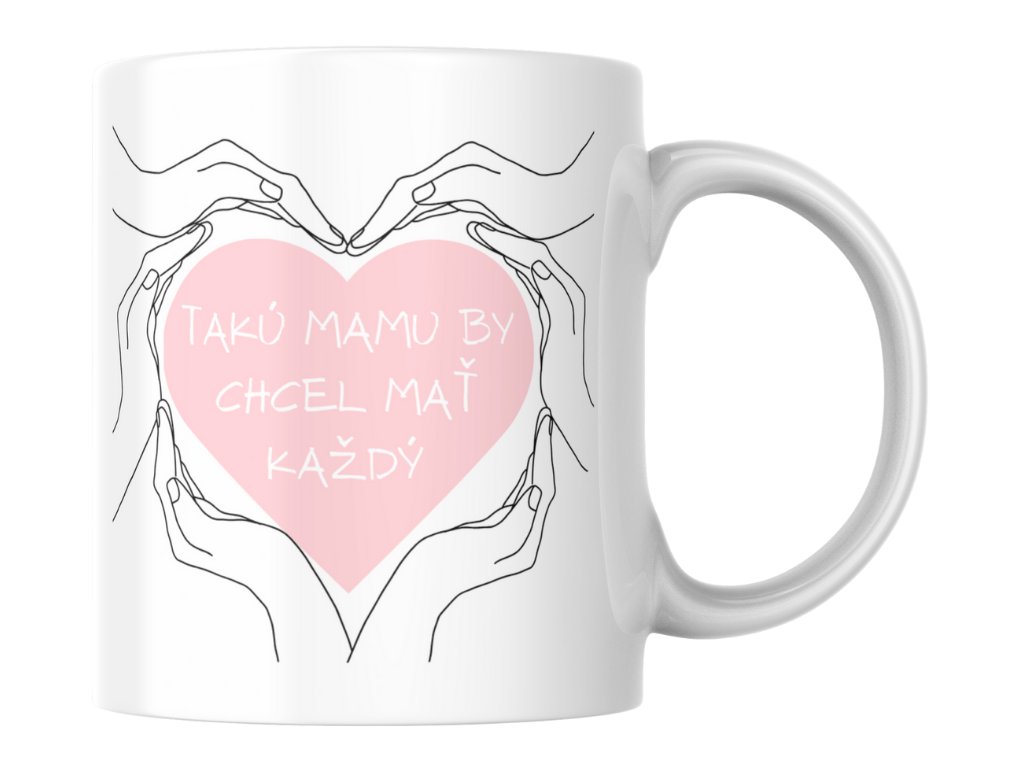 Najlepšia mama na svete si zaslúži výnimočný darček! Keramický hrnček Mama (330ml) s nádhernými rukami a ružové srdiečko a textom "Takú mamu by chcel mať každý". Dojemný dizajn vytvorený sublimačnou tlačou. Perfektný darček na Deň matiek, narodeniny alebo len tak pre tú najlepšiu mamu! 💗👐☕