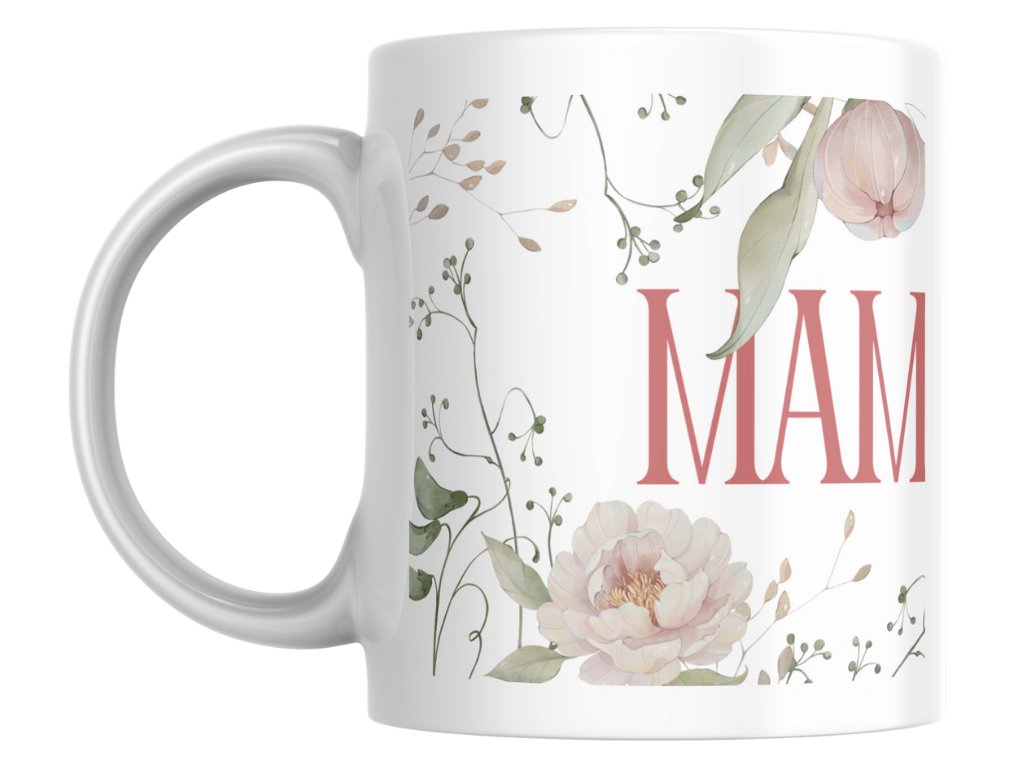 - Krásna sublimačná tlač – farebné kvety a jemný nápis "Maminka", ktorý vydrží umývanie i čas