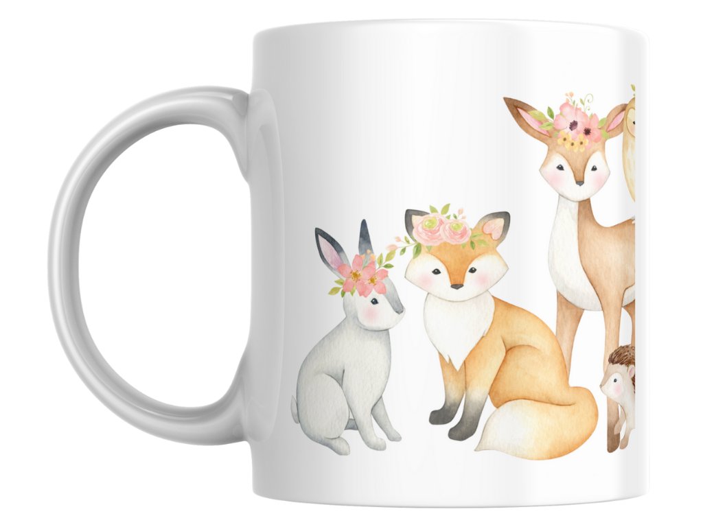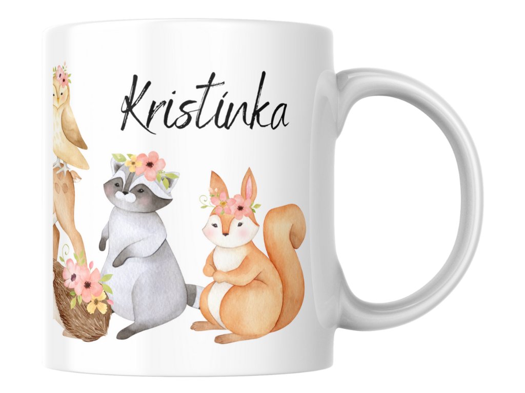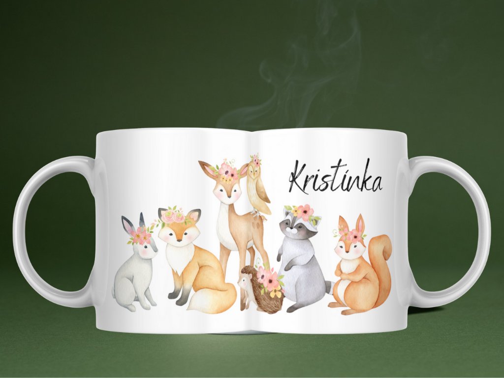 Rozprávkový hrnček s menom – pre každú malú princeznú milujúcu zvieratká! Zvieratká s kvetinových čelenkami sú sen každého dievčatka! Náš personalizovaný keramický hrnček Milé zvieratká s nádherným rozprávkovým dizajnom plným roztomilých zvieratiek v kvetinových ozdobách je dokonalým darčekom, ktorý spojí lásku k prírode, zvieratám a krásnym veciam.