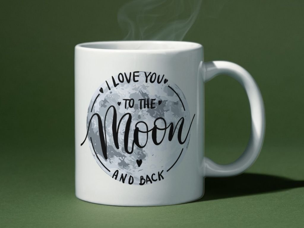 Dizajn hrnčeka je poetický a plný symboliky. Mesiac odjakživa predstavoval romantiku, tajomstvo a nekonečnosť. Text vpísaný do mesiaca dodáva celému dizajnu osobný rozmer. Je to ako keby bolo vaše vyznanie napísané na oblohe, viditeľné pre celý svet.