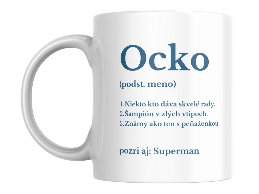 - Slovníková definícia "Ocko" – Na druhej strane hrnčeka nájdete oficiálnu definíciu s tromi základnými charakteristikami
