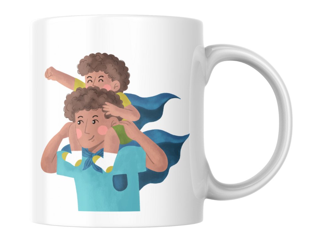 Ocko vás hodí do vzduchu. Ocko sa s vami bicykluje. Ocko hrá futbal na dvore. Ocko stava s vami lego. Ocko číta rozprávky pred spaním. Ocko je na všetko! Predstavte si: Ocko drží na ramenách svojho malého hrdinu, obaja majú plášte a smiech znie po celom dome. Toto je tá pravá radosť otcovstva! Tento hrnček s otcom a synom zachytáva presne túto krásnu chvíľu.