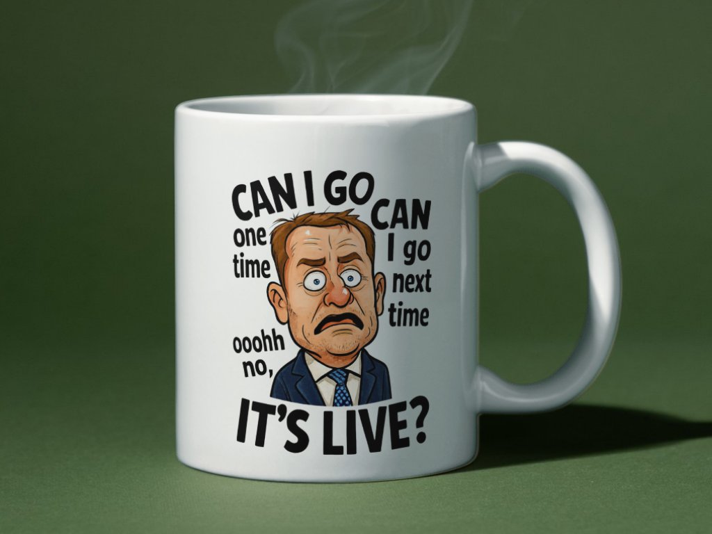 "Can i go one time? Next time? Oh noooo! Its live?" Toto je hrnček, ktorý zachytáva jeden z najepickejších LIVE momentov slovenskej politiky! Keramický hrnček s objemom 330ml s legendárnou scénou, keď Igor Matovič zistil, že je naživo v televízii. Ten výraz prekvapenia, tá panika, to zistenie... OH NOOO! Je to moment, ktorý sa stal virálnym hitom!