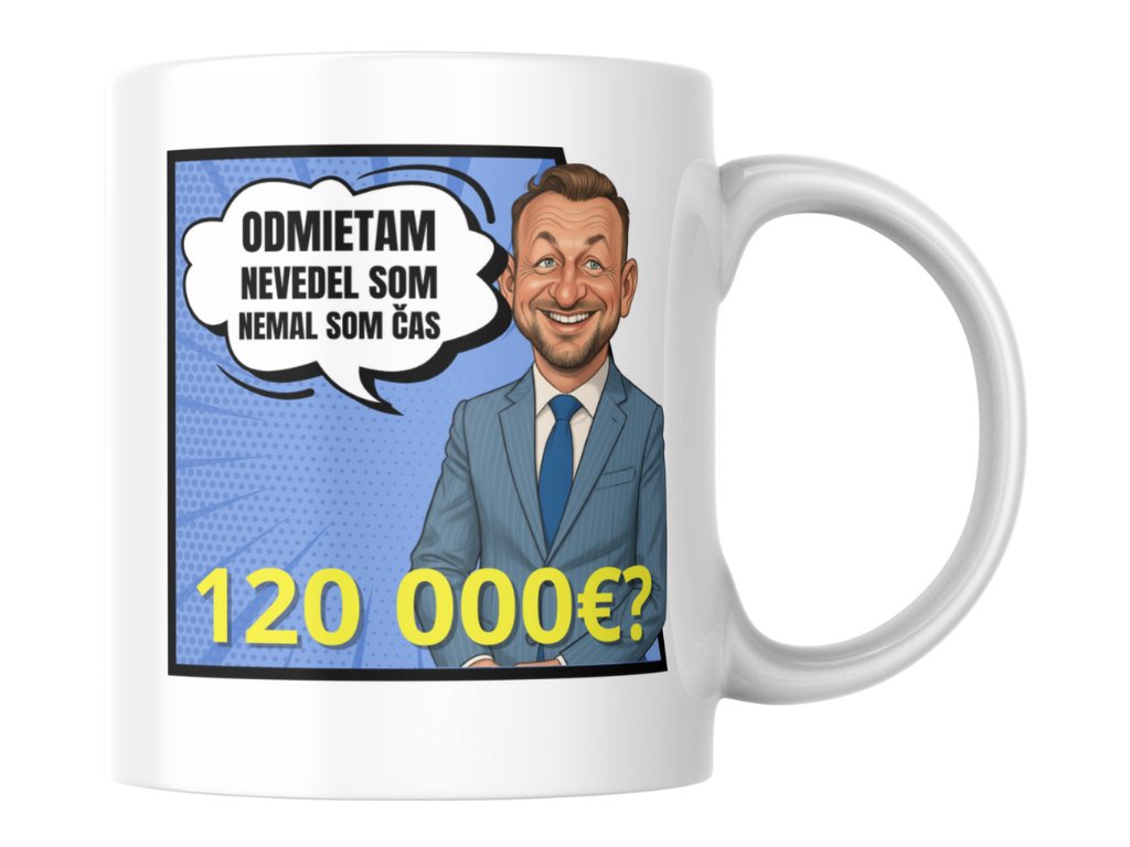 "Pokuta 120 000 eur" – keď schránka počká! Tento satirický hrnček s vtipom komentuje jednu z najkontroverznejších politických káuz posledného obdobia! Keramický hrnček s objemom 330ml zachytáva príbeh ministra vnútra Matúša Šutaja Eštoka, ktorý mal zaplatiť pokutu 120 000 eur za urážky, no odmietol to s výhovorkou, že o tom nevedel a nemal čas kontrolovať schránku. Dizajn hrnčeka vtipne zobrazuje túto situáciu a dáva jasný odkaz svetu – niektoré výhovorky sú jednoducho nezabudnuteľné!