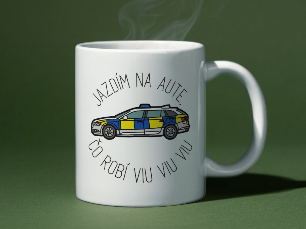 - Vtipný nápis s policajným nádychom – Text "Jazdím na aute ktoré robí viu viu viu" je vtipnou narážkou na typické policajné vtipy. Každý policajt ocení tento hravý odkaz na svoju každodennú prácu.