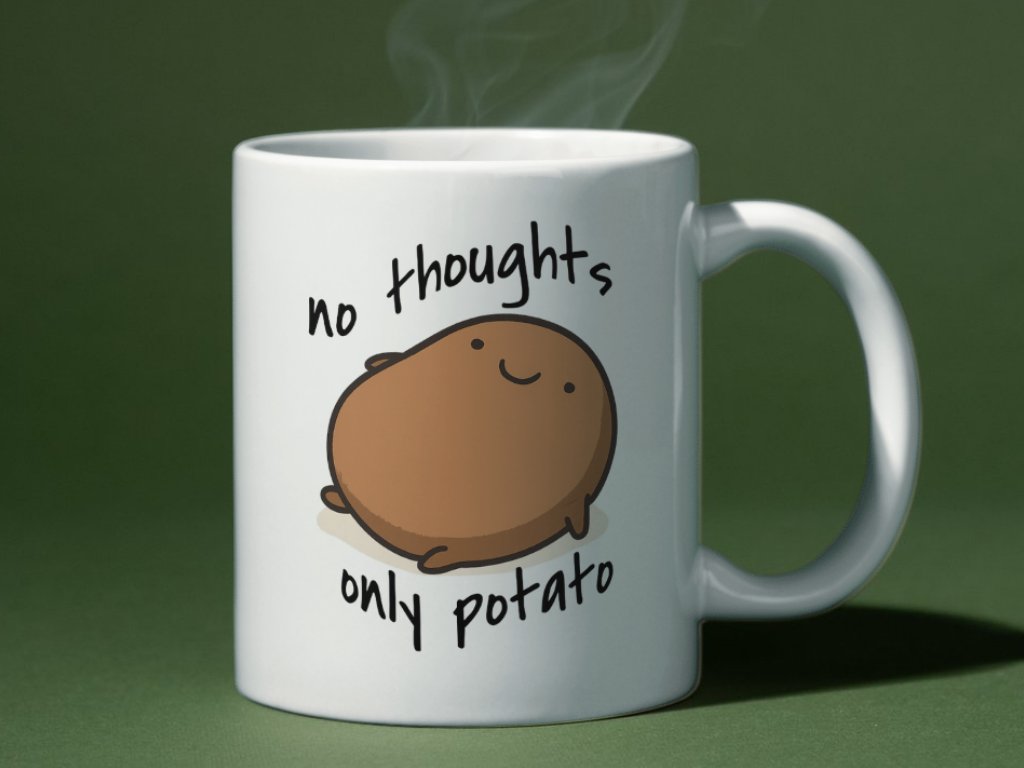 🥔 Vtipný nápis: "No thoughts only potato" – žiadne myšlienky, len zemiak
