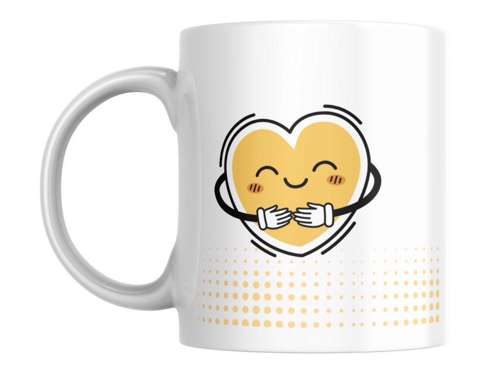 Nemôžeš byť vždy fyzicky prítomný pri ľuďoch, ktorých máš rád. Ale tento hrnček môže. Objímajúce sa srdiečko na druhej strane je tvojím objatím, ktoré zostáva. Každý raz, keď sa hrnček otočí, vidí lásku a podporu.
