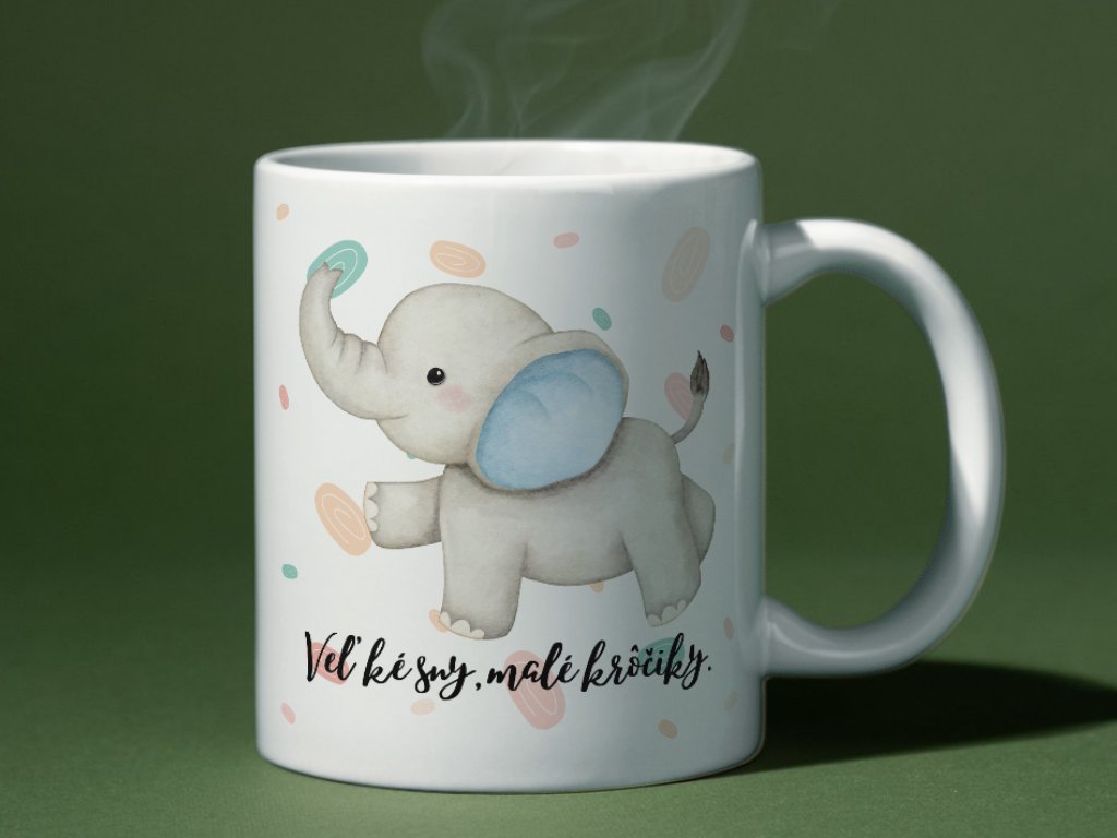 Malé krôčiky, veľké sny hrnček nie je len nádoba na nápoje - je to denná pripomienka toho, že každé dieťa má v sebe obrovský potenciál! Rozkošný sloník symbolizuje múdrosť, silu a jemnosť zároveň, presne ako naše najmenšie poklady.