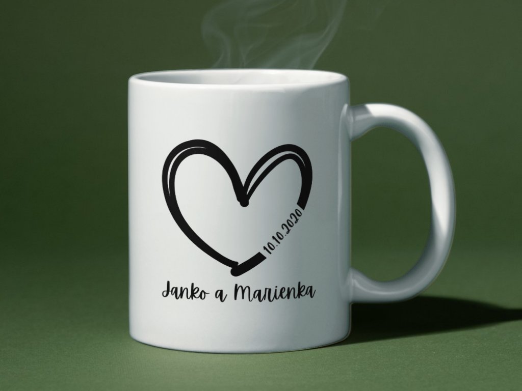 Tento hrnček je viac než len nádoba na nápoj – je to každodenná pripomienka vašej lásky a spoločných momentov. Každé ráno pri káve si pripomeniete ten špeciálny deň, keď sa všetko začalo alebo keď ste si povedali áno. Je to dojemné, romantické a plné významu. Jemný dizajn so srdiečkom dodáva hrnčeku elegantnú romanttickú atmosféru, ktorá sa hodí do každej domácnosti.