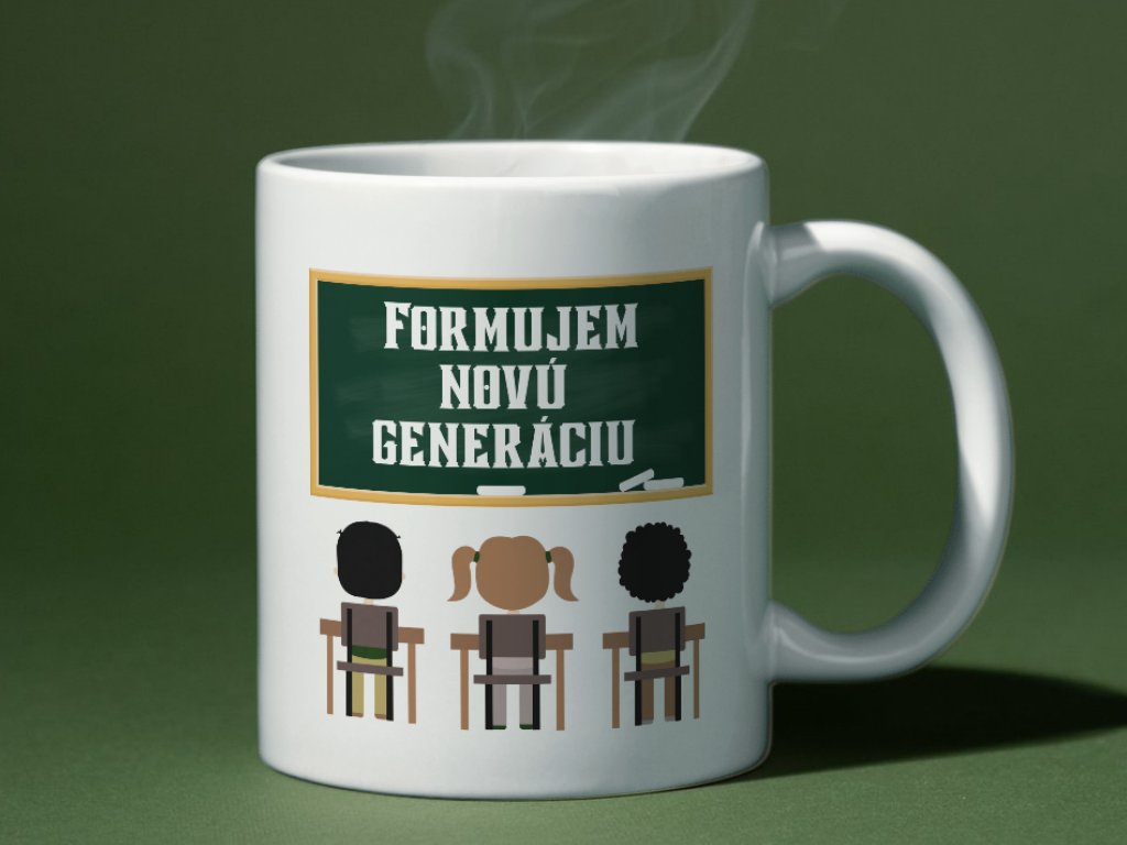 🎨 Sublimačná tlač s motívom školskej tabule a nápisom "Formujem novú generáciu"