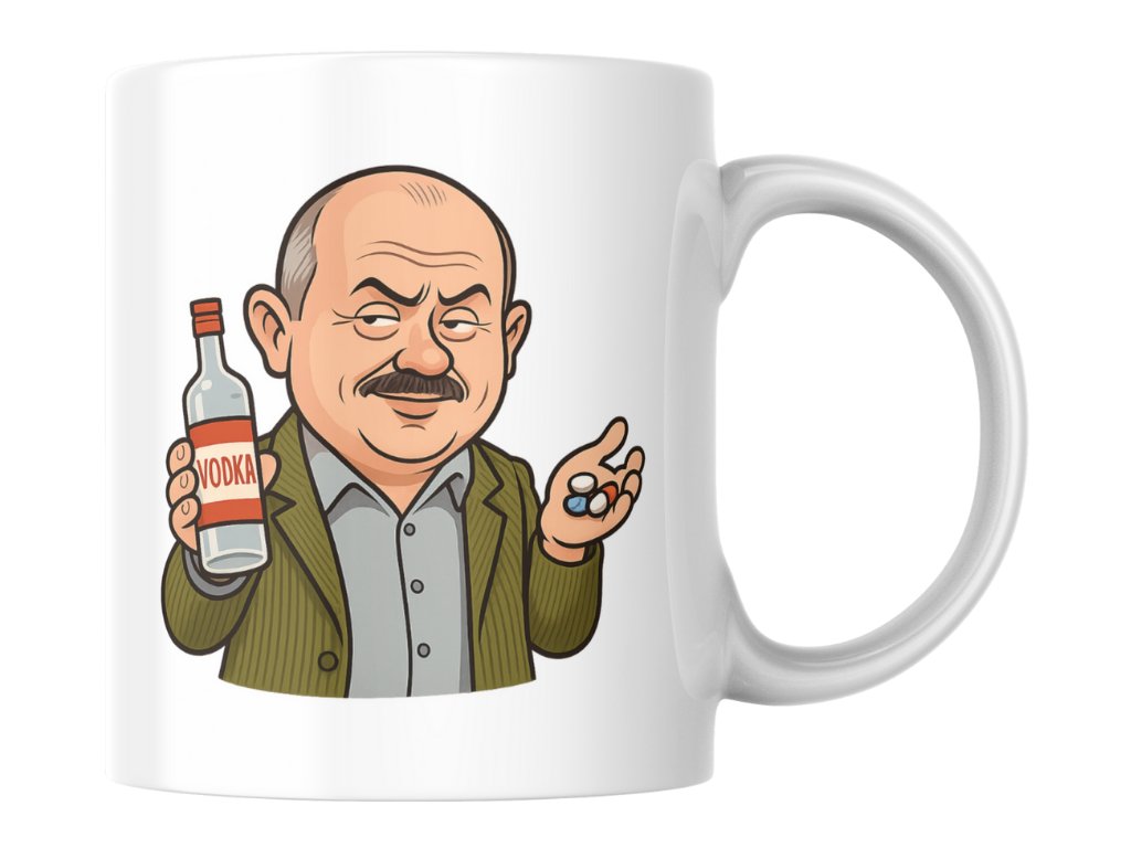 "Vodka a bromhexin - najlepšia kombinácia!" Toto je hrnček, ktorý zachytáva jeden z najkontroverznejších a najzábavnejších momentov pandémie COVID-19! Keramický hrnček s objemom 330ml s karikatúrou a legendárnou "liečebnou radou", ktorá sa stala virálnym symbolom alternatívnych prístupov k zdraviu.