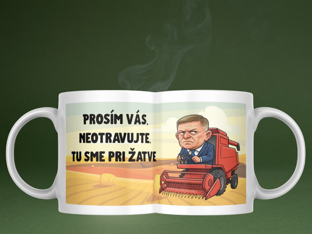 "Prosím Vás, neotravujte. Tu sme pri žatve!" Toto nie je len hrnček – toto je manifest pre všetkých, ktorí potrebujú pokoj pri svojej práci! Keramický hrnček s objemom 330ml s legendárnou hláškou Róberta Fica, ktorá sa stala kultovou odpoveďou na všetky otravné situácie.