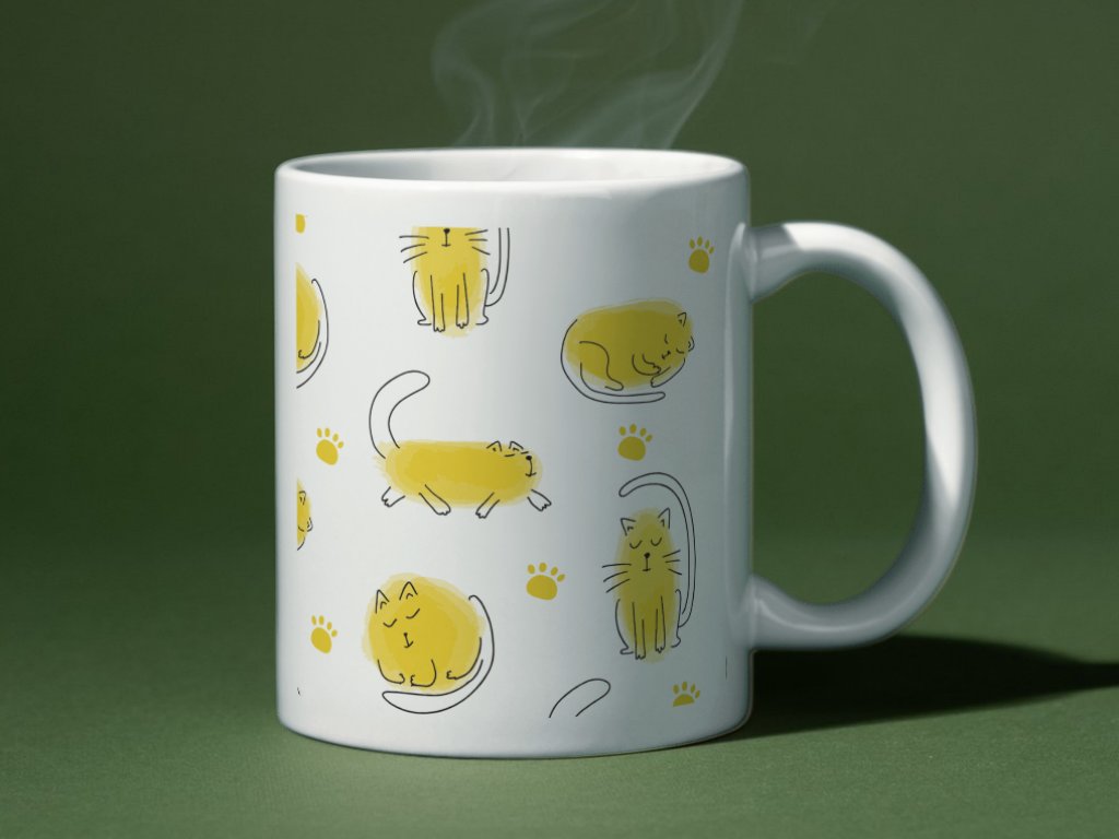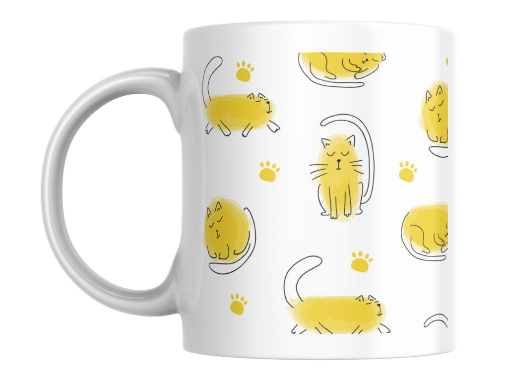 Hrnček so žltými mačičkami prinesie do každého rána s úsmev a žltú mačaciu energiu!